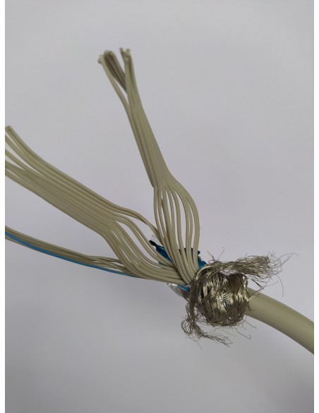 Cavo piatto in guaina tonda, senza schermatura. La particolarità di questo articolo é che, sulla base di un flat standard passo 1,27mm, il cavo presenta una periodicità di spirali/nocciatura (35 mm con asola / 25 mm senza asola), che permettono molteplici impieghi, con elevata flessibilità.